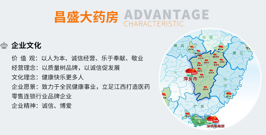 宜春市昌盛大藥房有限公司于2014年在當(dāng)?shù)毓ど虣C(jī)關(guān)登記成立,位于江西省宜春市上高縣工業(yè)園,這里交通便捷!宜春市昌盛大藥房有限公司是一家重發(fā)展、重質(zhì)量的企業(yè)。一直以穩(wěn)定的產(chǎn)品質(zhì)量和良好的經(jīng)營(yíng)信譽(yù),取得了......